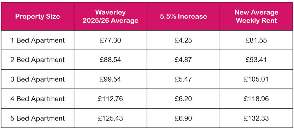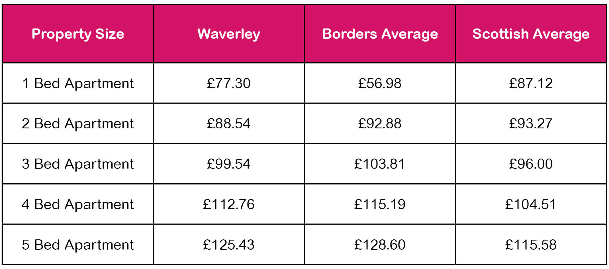 Table 1 shows the average rents for 2025/26 and how they compare with the Borders average.